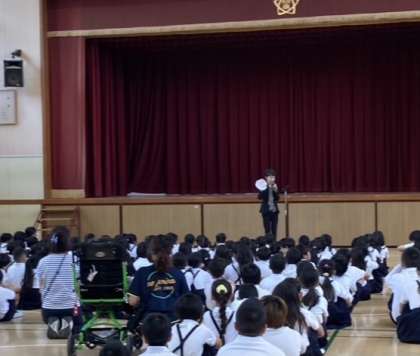 今日の月曜児童朝会では、万博への遠足について話をしました。