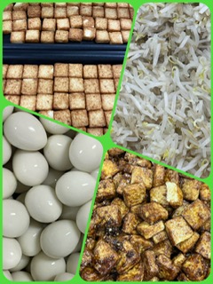 豚肉、うずら卵、玉ねぎ、キャベツ、にんじん、たけのこ、ピーマン、しいたけを使用し、とろみをつけて仕上げでいます。