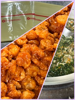 「えびのチリソース」は、塩、こしょう、料理酒で下味をつけたえびにでんぷんをまぶして、油で揚げたいいます。手作りのチリソースのタレを揚げたえびにからませています。少し辛みのきいたソースに仕上がっています。
