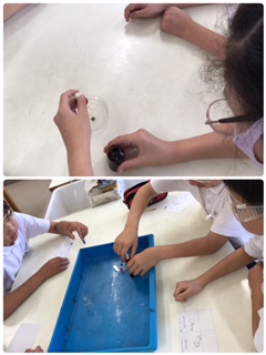でんぷんが存在していれば、紫色に変化します。ノートやワークシートに記録してしてしっかり学習していました。