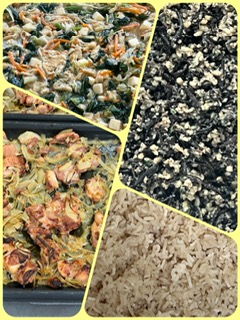 「鶏肉の甘辛焼き」は、鶏肉に、さとう、みりん、しょうゆで下味をつけ玉ねぎを混ぜ合わせ、焼き物機で焼いています。玉ねぎの甘さも加わりご飯がすすむ献立です。