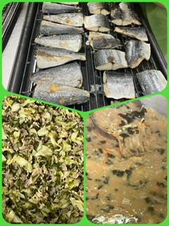 「さごしのおろしじょうゆかけ」は、料理酒で下味をつけ焼き物機で焼いたさごしにだいこんおろし、みりん、しょうゆで作ったタレをかけています。だいこんおろしのタレがさっぱりしていてごはんに合う一品です。