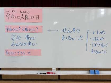 今週から「平和と人権の日」ということで、子どもたちは平和について考えたり、自分たちにできることをそれぞれの学級で考えたりていきます。