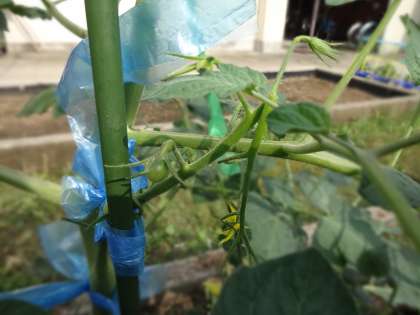 「花が咲いている。」「ピーマンが大きくなった。」「かわいいトマトができている。」と朝、学校に来ると生活科で育てている野菜を楽しそうに観察しています。