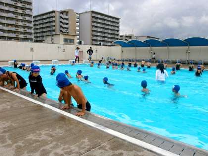 屋上プールに子どもたちのはしゃぎ声がこだましました。