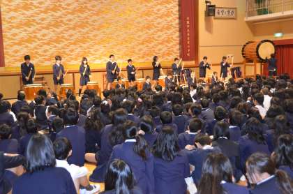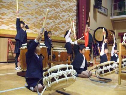 普段触ることのない太鼓に子どもたちは興奮しながら説明を聴いてバチを振り下ろしていました。