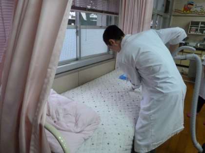 薬剤師の谷先生に、学校環境の保全維持のために、さまざまな検査をおこなっていただきました。今回は給食の衛生検査や水道水の水質検査、保健室のベットや支援教室の畳のダニ検査をおこないました。