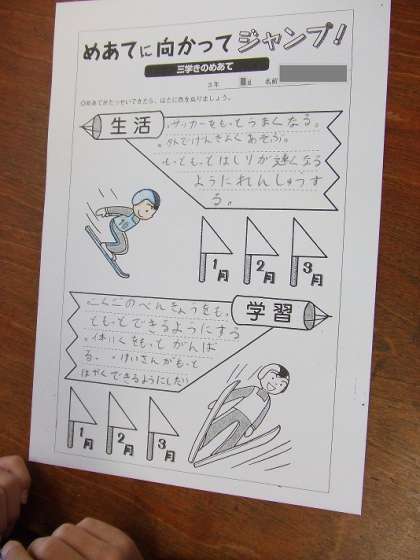 始業式のあと、教室へ戻った子ども達は、「3学期のめあて」を書いたり