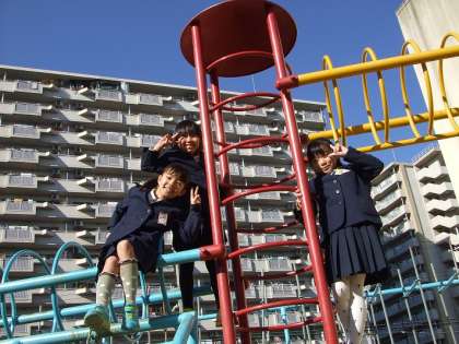 休憩時には、運動場で寒さにも負けないで、元気に遊んでいました。
