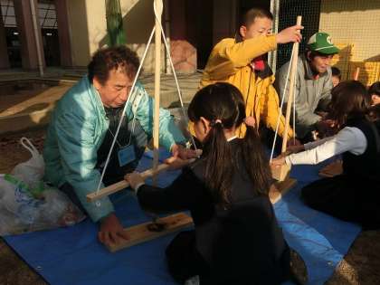 火おこしの体験学習は難しかったけど、やさしく教えてもらい、