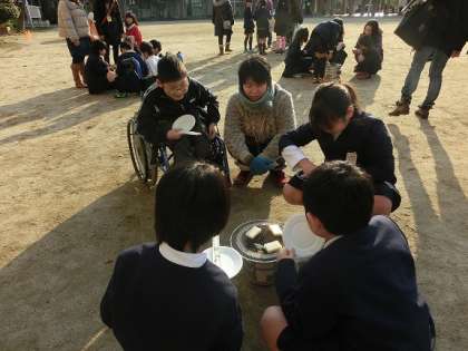 青少年指導委員の皆様のお手伝いのもと、「七輪でもちやき」