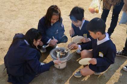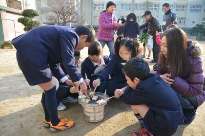 こげ過ぎないように焼き上げたおもちを、みんなで