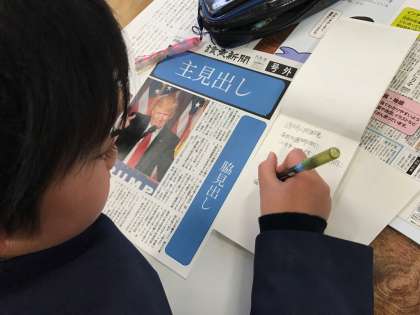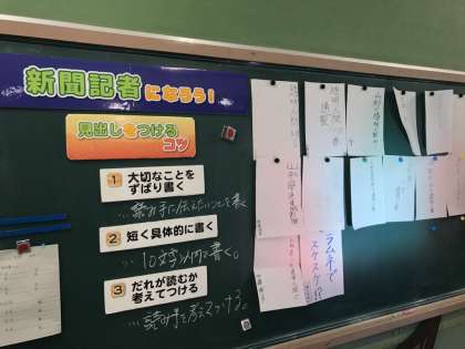 授業では「新聞記者になろう」というテーマで、新聞の見出しを考えました。