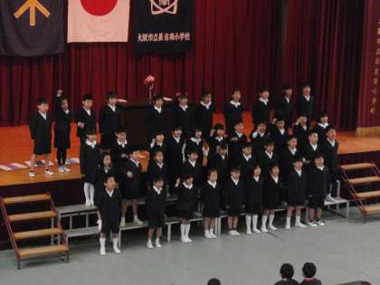担任の先生の発表の後、2年生のお兄さんお姉さんがお祝いの言葉と歌、メダルをプレゼントしてくれました。