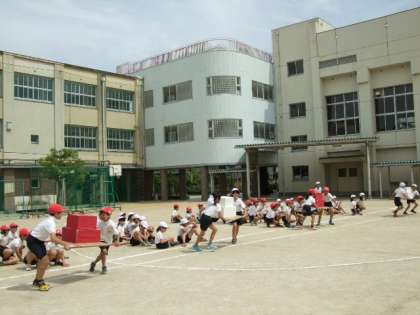 6月6日(火)に3・4年生はスポーツ大会を行いました。縦割り班を中心に4グループを編成し、3・4年生で協力して競技に挑みました。はじめに挑戦した「箱運び」では、4年生が3年生の動きにうまく合わせてみこしに乗せた2段の箱を上手に運んでいました。