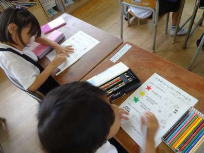 栄養教諭の先生に来ていただき、いろいろな食材を食べて元気な体を作ろうと、紙しばいを使って教えて頂きました。好き嫌いせず食べて、元気な体を作ってほしいです。