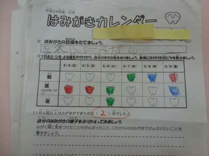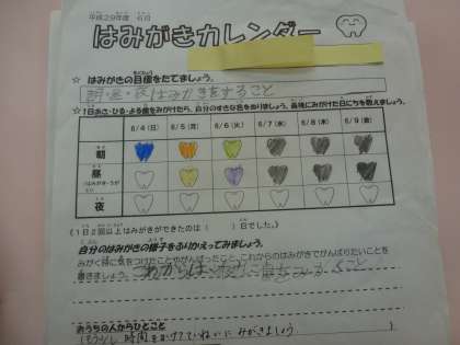 朝・昼・夜と歯みがきをしたら色をぬる「歯みがきカレンダー」です。