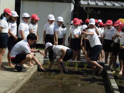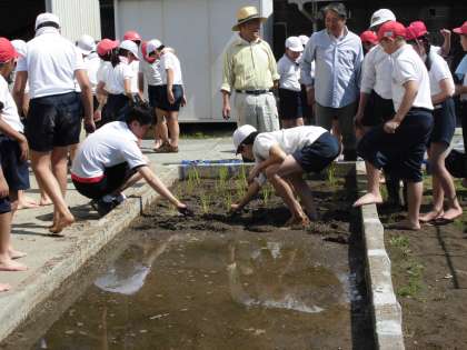 6月15日(木)に、地域の村井さんのご指導の下で5年生が田植えの体験学習をしました。