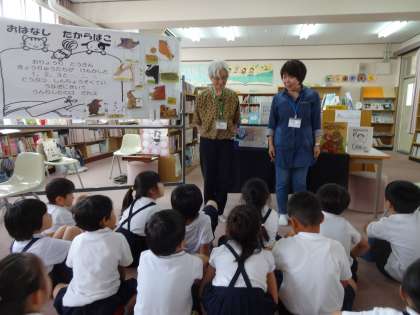 平野図書館より、「おはなしたからばこ」の吉澤さんと堺さんが来てくださいました。