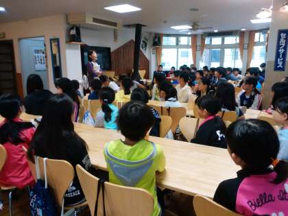 林間学習2日目ですが、雨です。屋外で行う予定の朝のつどいも急遽食堂に変更になってしまいました。