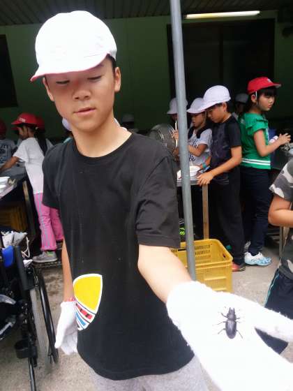 大阪ではめったに見られない野生のクワガタですが、記念写真撮影後心優しい男子は山に帰してやりました。