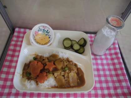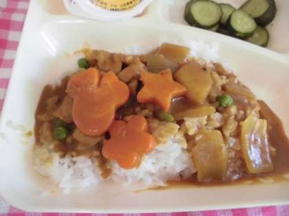 本日のチキンカレーの中にラッキーにんじんが入っていましたよ。