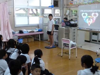 4月に測定して以来、9月の2回目の測定は「どれだけ身長が伸びているか」楽しみにしている児童もたくさんいました。日焼けした子どもたちが、いちだんと大きく成長したように見えました。