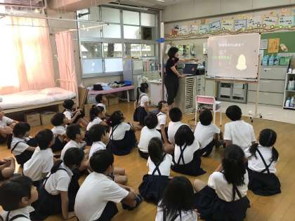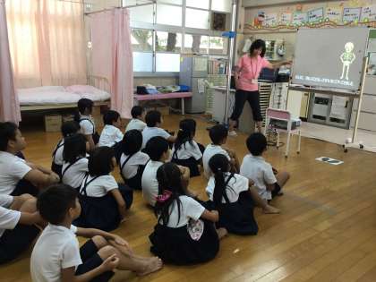 保健指導は、ほねのはなしや脳の働き、いのちの大切さを学びました。おとうさん、おかあさんからもらったいのちを大切にしましょうと話しました。