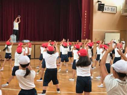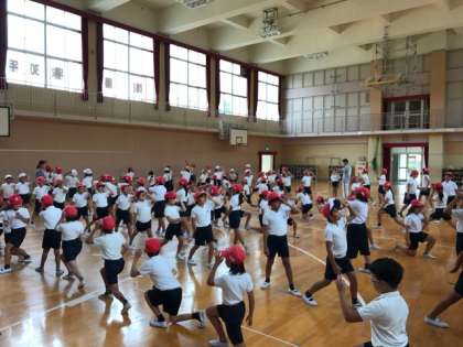 今日から運動会の練習が始まりました。子どもたちは真剣に先生の話を聞いていました。ダンスの練習では、からだを大きく動かし、息を合わせて踊りました。