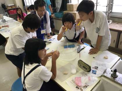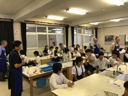 「水よう液の性質」という学習の発展として、「NPO法人 コアネット関西本部」から6名の先生方に来ていただきました。