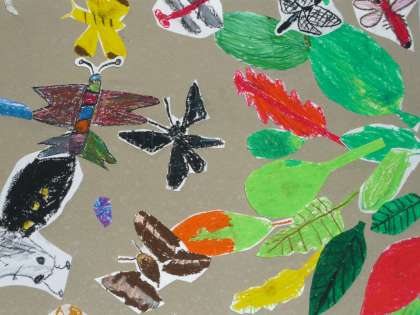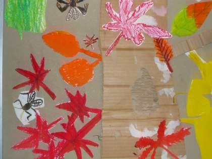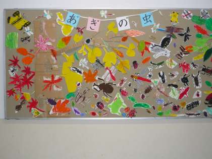 2年生の掲示板には、みんなが描いた秋の葉や虫で彩られ、紅葉・まつ虫・すず虫・・・コオロギ・とんぼなど、とても賑やかな秋になりました。