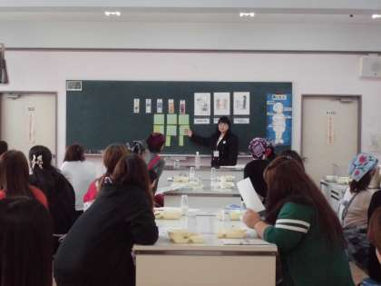 10月18日(水)に、長吉出戸小学校の栄養教諭の田坂先生を講師にお招きし、給食試食会を開催したところ、30名近くの保護者の方が参加してくださいました。