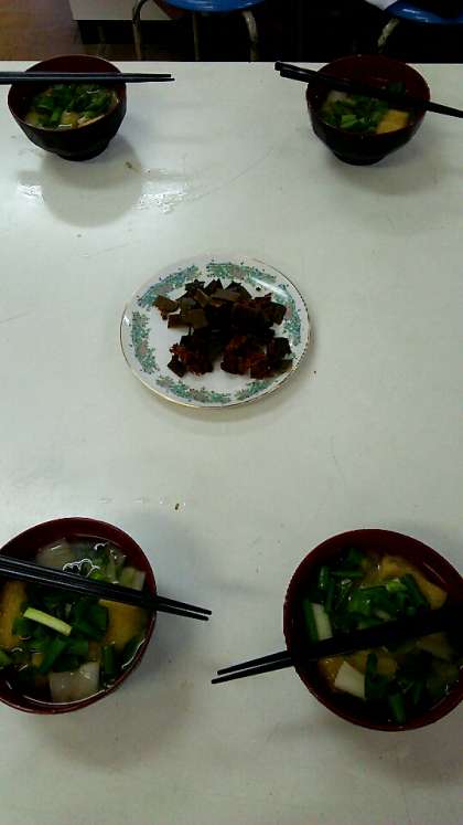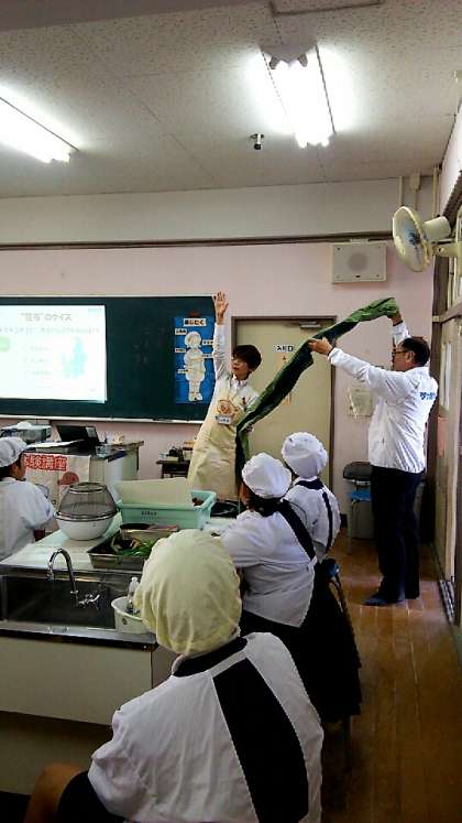 5年生は、大阪ガスによる「和食だし体験講座」の出前授業を受けました。和食だしについての講座のあと、実際にかつおぶしと昆布からだしをとって、みそ汁を作りました。本格的なみそ汁の味を堪能しました。