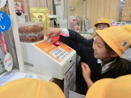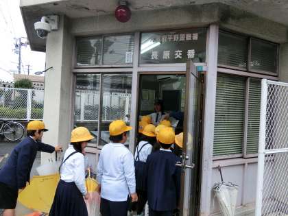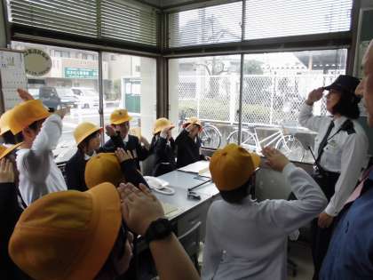 郵便局では番号カードの機械の取扱いを教えていただき、交番では敬礼の仕方や警察官の身につけている警棒や手錠や警察手帳などを見せて頂きました。