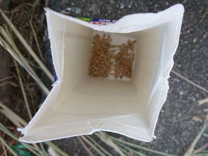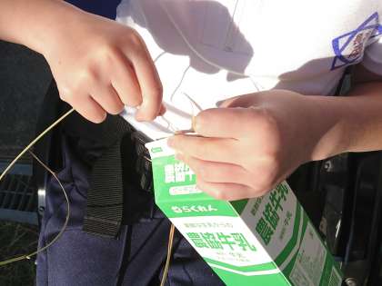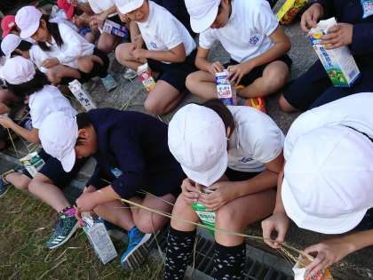 11月10日(金)に、地域の村井さんにゲストティーチャーに来ていただき、牛乳パック使った脱穀の方法を教えていただきました。