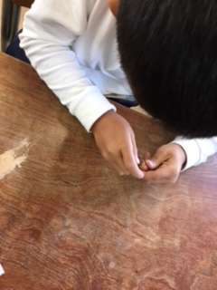 「まてばしい」を使ってドングリ笛を作っています。