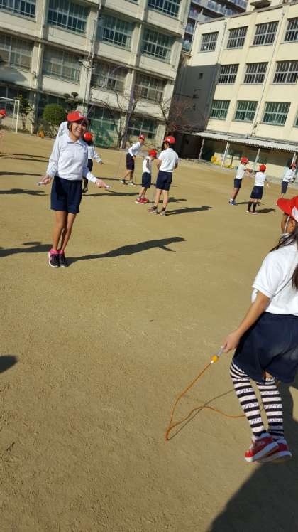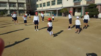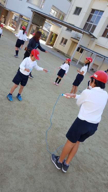 1年生と一緒に1月の縄跳び月間に向けて、縄跳び交流会を行いました。小さくてかわいい一年生相手に、子どもたちは戸惑いながらも、様々な跳び方を身振り手振りで伝えていました。「上手だね。」「もうちょっと!」と声をかける姿に子どもたちの成長を感じました。