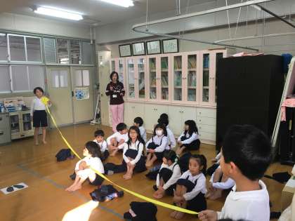 保健指導では、風邪の予防について教えていただきました。マスクを実際使い、正しいつけ方も教えていただきました。