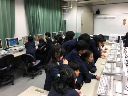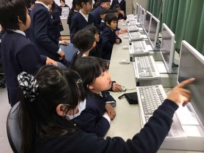 5年生に教えてもらいながら初めてのパソコン体験をしました。