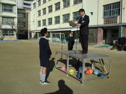 臨時全校朝会・区長表彰(2月14日)