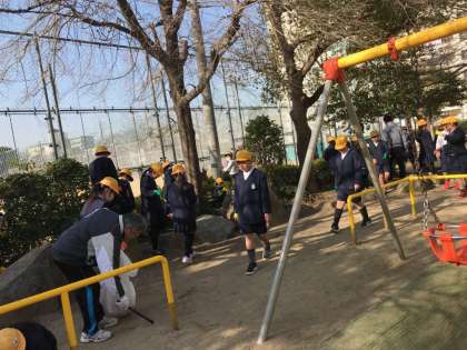 20日(火)の1時間目、4年生全員で中央公園の掃除をしました。子どもたちは、色々なごみが落ちていることに驚きながらも、隅々までごみを拾っていました。力を合わせて、いつも遊んでいる公園をきれいにすることができました。