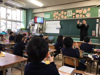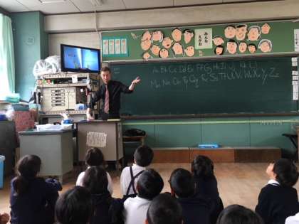 今日はダン先生に来て頂き、英語の絵本を読んでもらいました。子どもたちはダン先生の発音を上手にマネしていました。