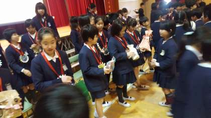 今日は6年生を送る会がありました。6年生の子どもたちは各学年から気持ちのこもった歌やプレゼントをもらいました。子どもたちは少し照れくさそうでしたが、笑顔で発表もプレゼントも楽しんでいました。最後には、全学年で「つばさをください」を合唱し、とても素晴らしい会になりました。