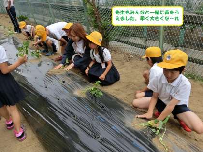2学期には、大きなおイモが収穫できるのを楽しみにしています。「おいもパーティ」を楽しみにしていてください。