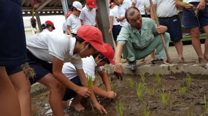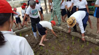 5、6時間目に田植えを行いました。地域の村井さんに教えていただき、子どもたちは初めて感じる土の感触を楽しんでいました。これから毎日世話をし、秋には立派なお米がとれるように学年全体で頑張っていきます。