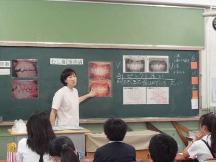 6月15日に《歯と口の健康教室》が行われました。歯科衛生士の方に来ていただき、歯周病などについて学びました。