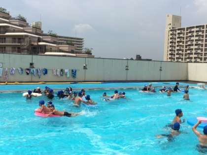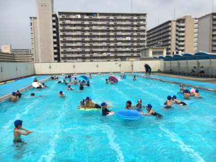 朝一番ということもあり、水が少し冷たかったのですが、子どもたちはとても楽しそうにプールに入っていました!