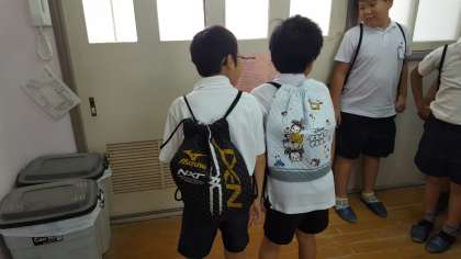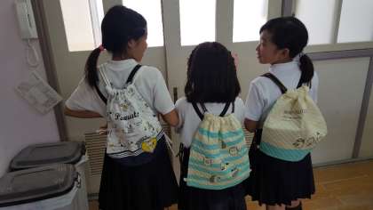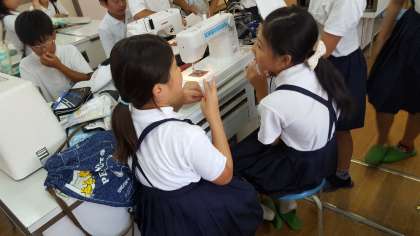 6月ごろから家庭科の学習で製作してきたナップザックがようやく完成しました。初めての並縫いやミシンなど、子どもたちは苦労しながらも協力し合い作ることができました。さっそく背負いながら、林間学習で使える日を心待ちにしているようでした。