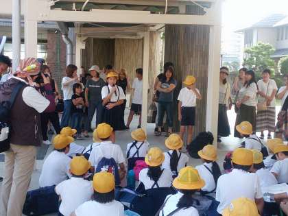 晴天のもと、参加予定の5年生が全員出席し、林間学習に出発しました。
