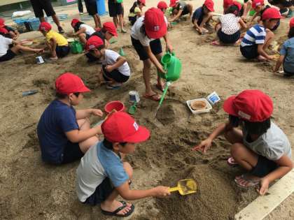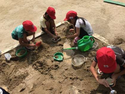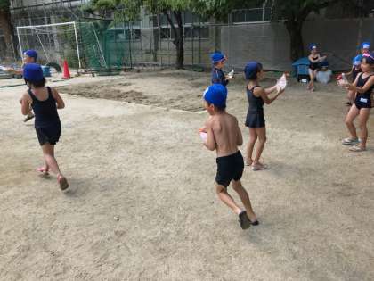 8月30日(木)、9月6日(木)に生活科の学習で「どろ・みずあそび」をしました。班で仲良く泥団子を作ったり、山や川を作ったりと、協力して活動することができました。水あそびでは、運動場で走りまわって、水のかけ合いをしました。最後は、プールに入り、笑顔いっぱいの子ども達でした。